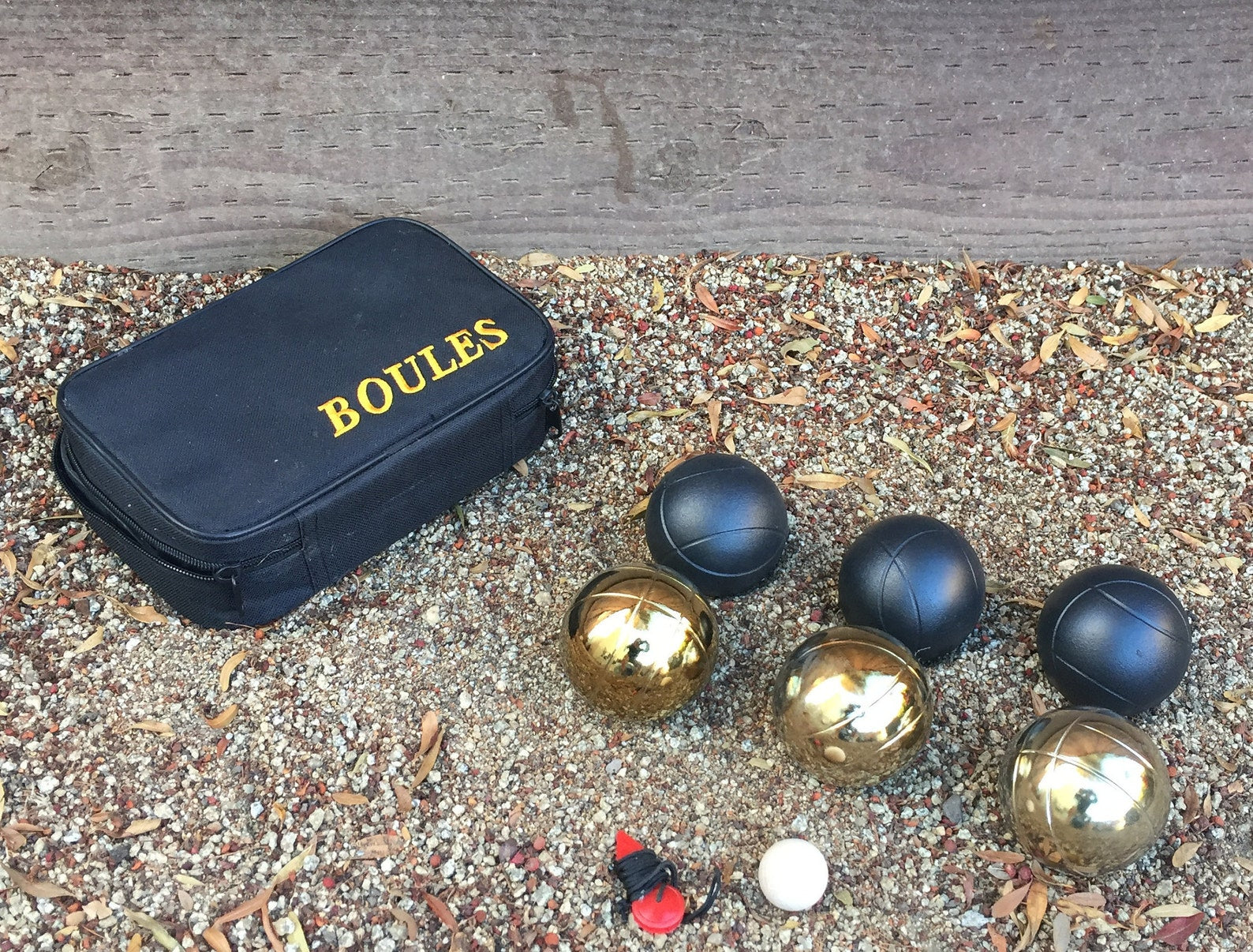 73mm Metal Boules Set with 6 Black and Gold Balls and Black Bag