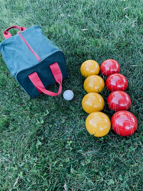 EPCO 110mm Rustic Tournament Quality Professional 8 Ball Bocce Set - Rustic Yellow/Rustic Red balls- green/maroon bag