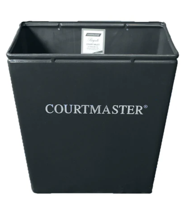 This Court Valet organizer is made of super strength high density polyethylene with a trash basket that holds up to 50% more. Stainless steel hardware is included. Available in black and green.