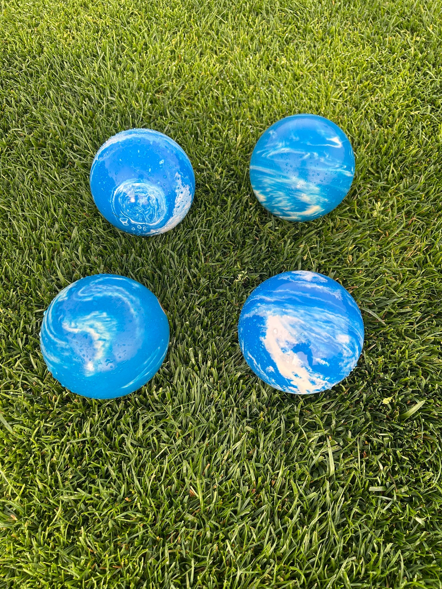 Official Tournament 4 Ball Bocce Set - 107mm marbleized blue and white (2 lbs. 1 oz.)