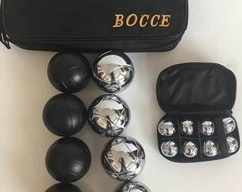 Little and Large Bocce Set- 73mm Metal Bocce/Petanque Set with 4 Black and 4 Silver Balls with Black Bag and 35mm Metal/Boules Set